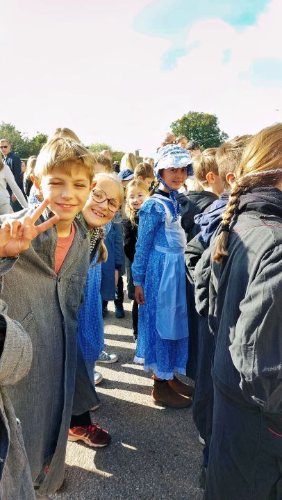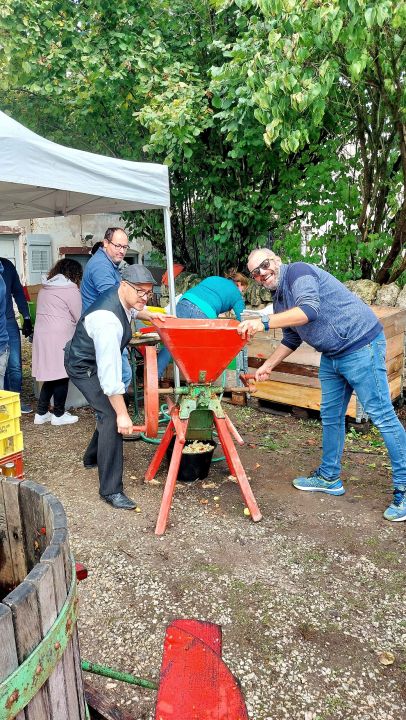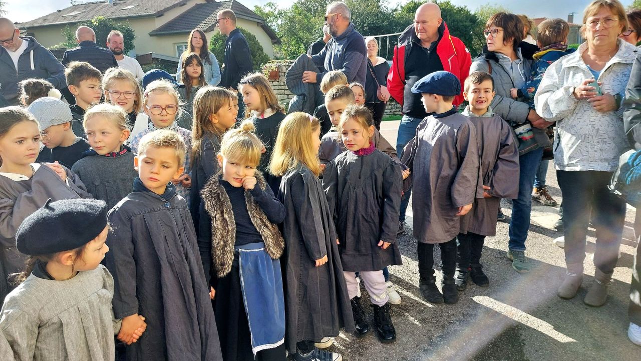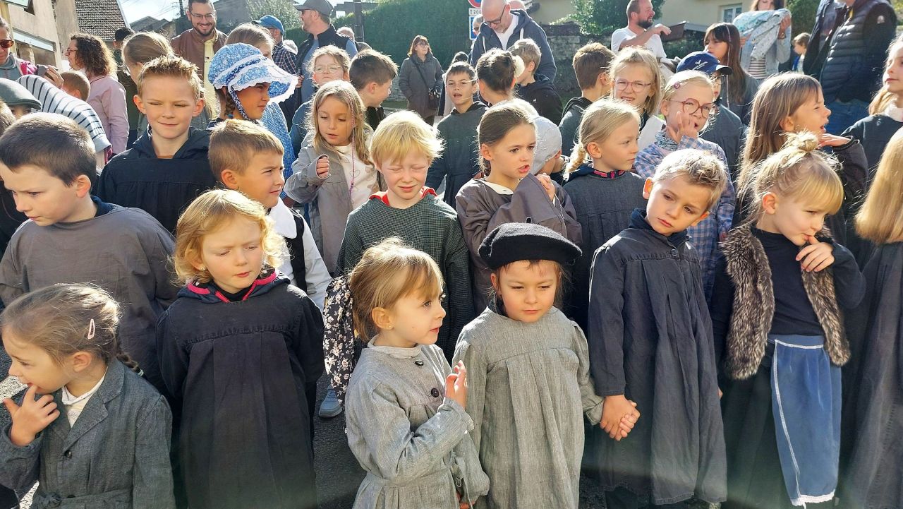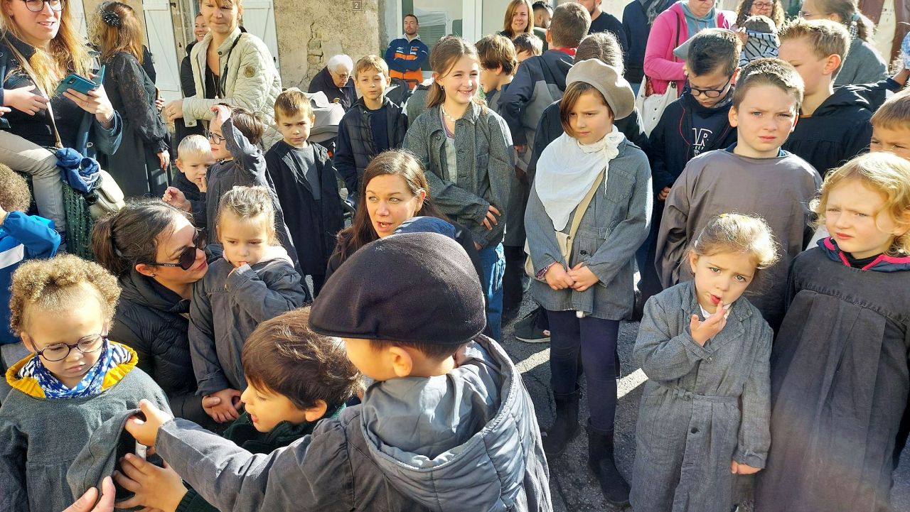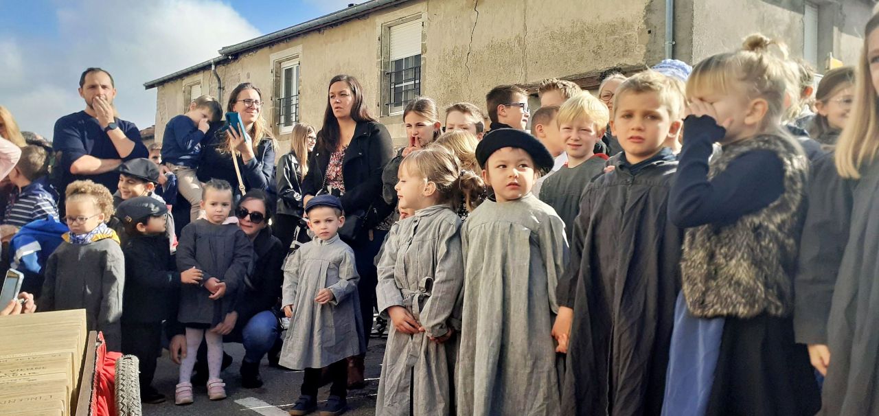 Nombreux parents et enfants présents ce jour... le stand jus de pommes a fait des heureux et les élèves sont toujours ravis de donner une représentation au coeur du village.