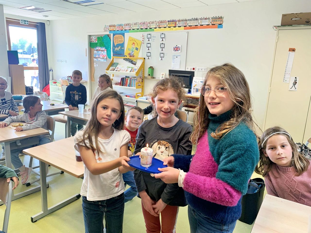 Dans la classe des CP nous fêterons des anniversaires par saison Aujourd'hui ce sont Jeanne et Nina, nées au début de l'automne qui ont soufflé leurs 6 bougies. Joyeux anniversaire à elles deux et merci aux familles pour les gâteaux!